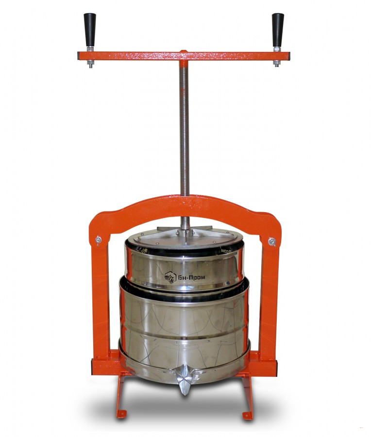 Пресс состоит из корзины для забруса, защитного цилиндра от разбрызгивания сока, приводного винта, поддона со сливным патрубком, опорной рамы приводного винта, основание (опора пресса)